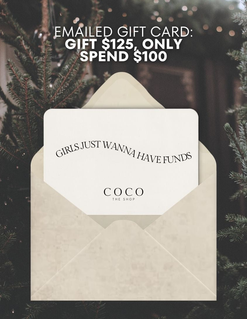 • Send an emailed gift card! We will email a $125 gift card, you pay $100!