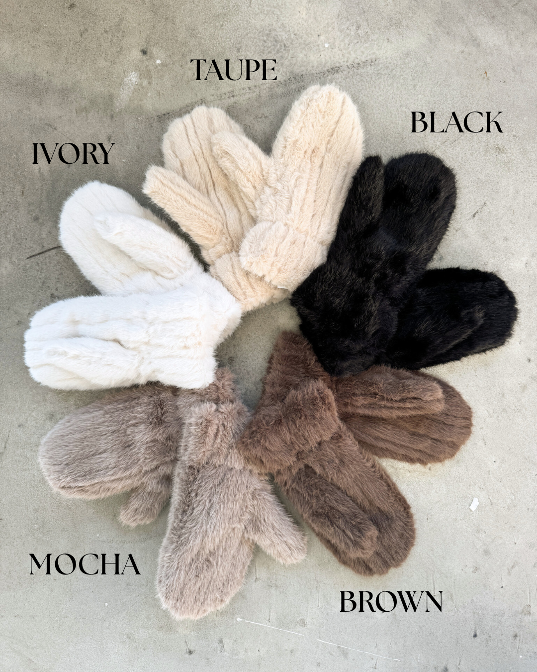 - Assorted faux fur mittens for ultimate warmth (select color of choice to add to cart!)