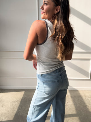 This white square-neck tank is a sleek, everyday essential with a flattering fitted shape that layers beautifully or stands strong all on its own.