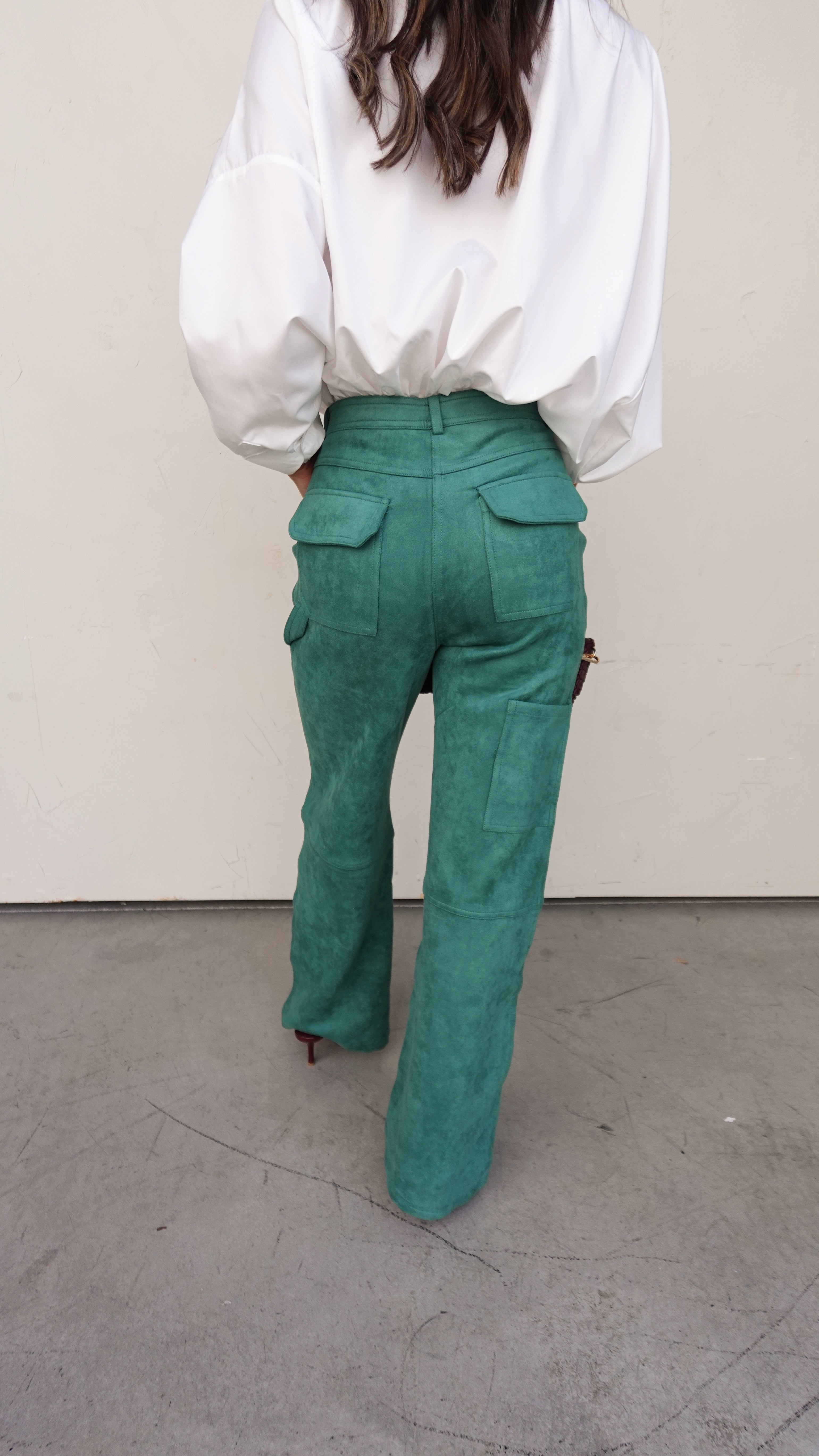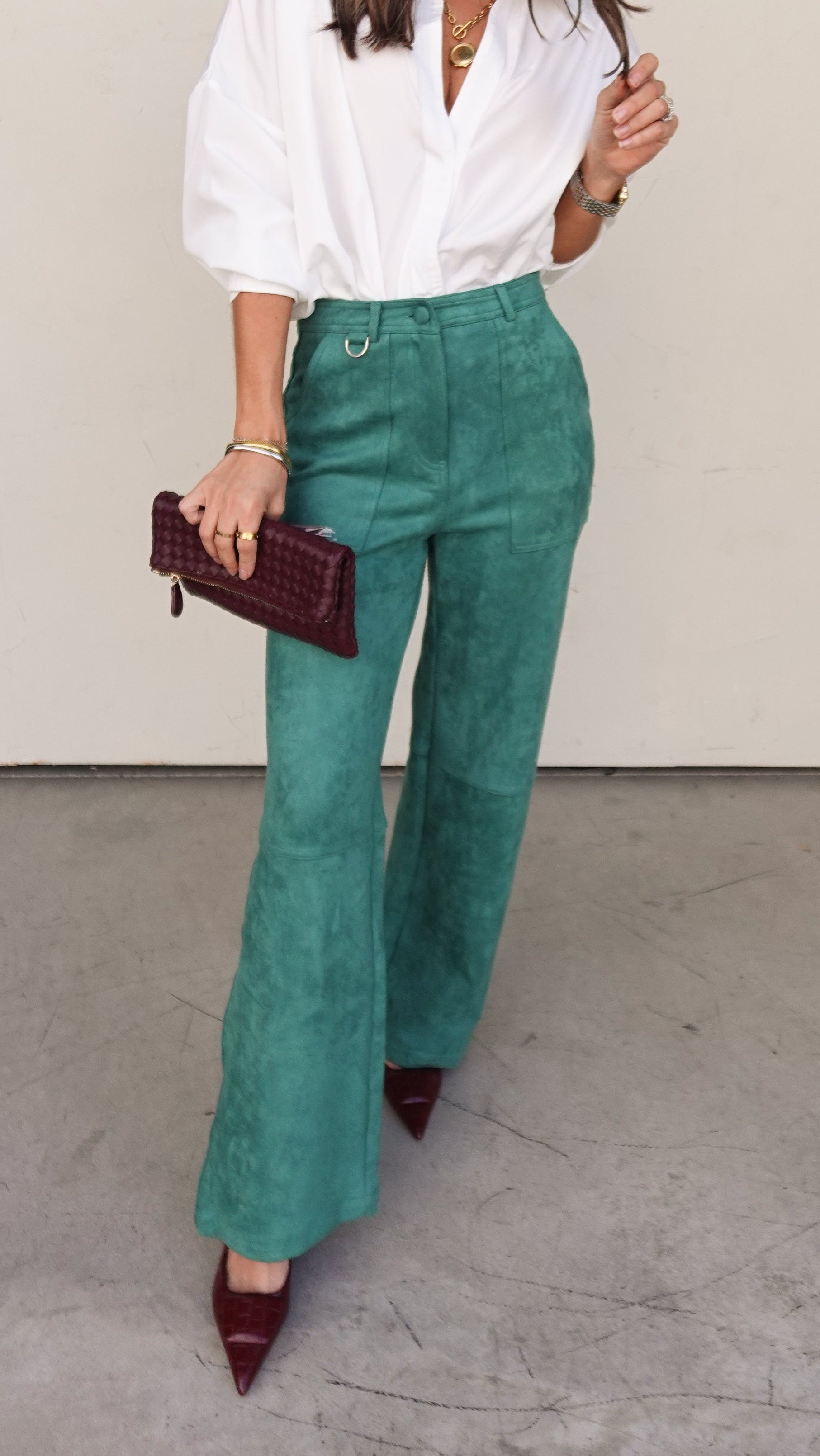 - A stunning pair of faux-suede pants in a rich emerald green that instantly elevates any outfit