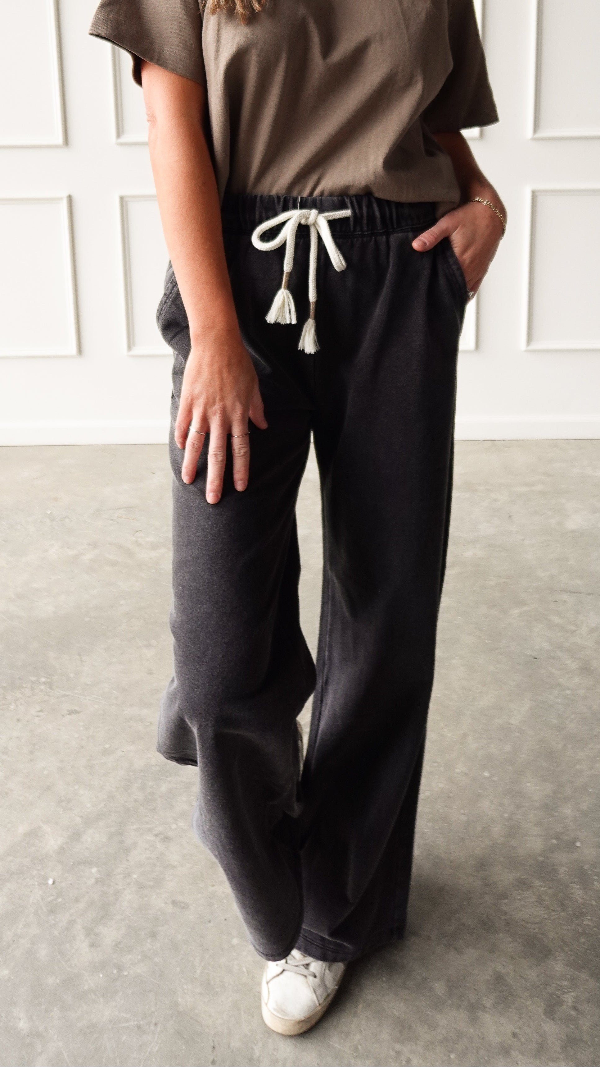 Designed with a soft, comfy fabric and an elastic waistband with drawstring, they offer a relaxed fit that still looks polished. The straight-leg silhouette drapes beautifully, making them perfect for everything from casual days to dressed-up evenings. Effortless, flattering, and quietly cool.