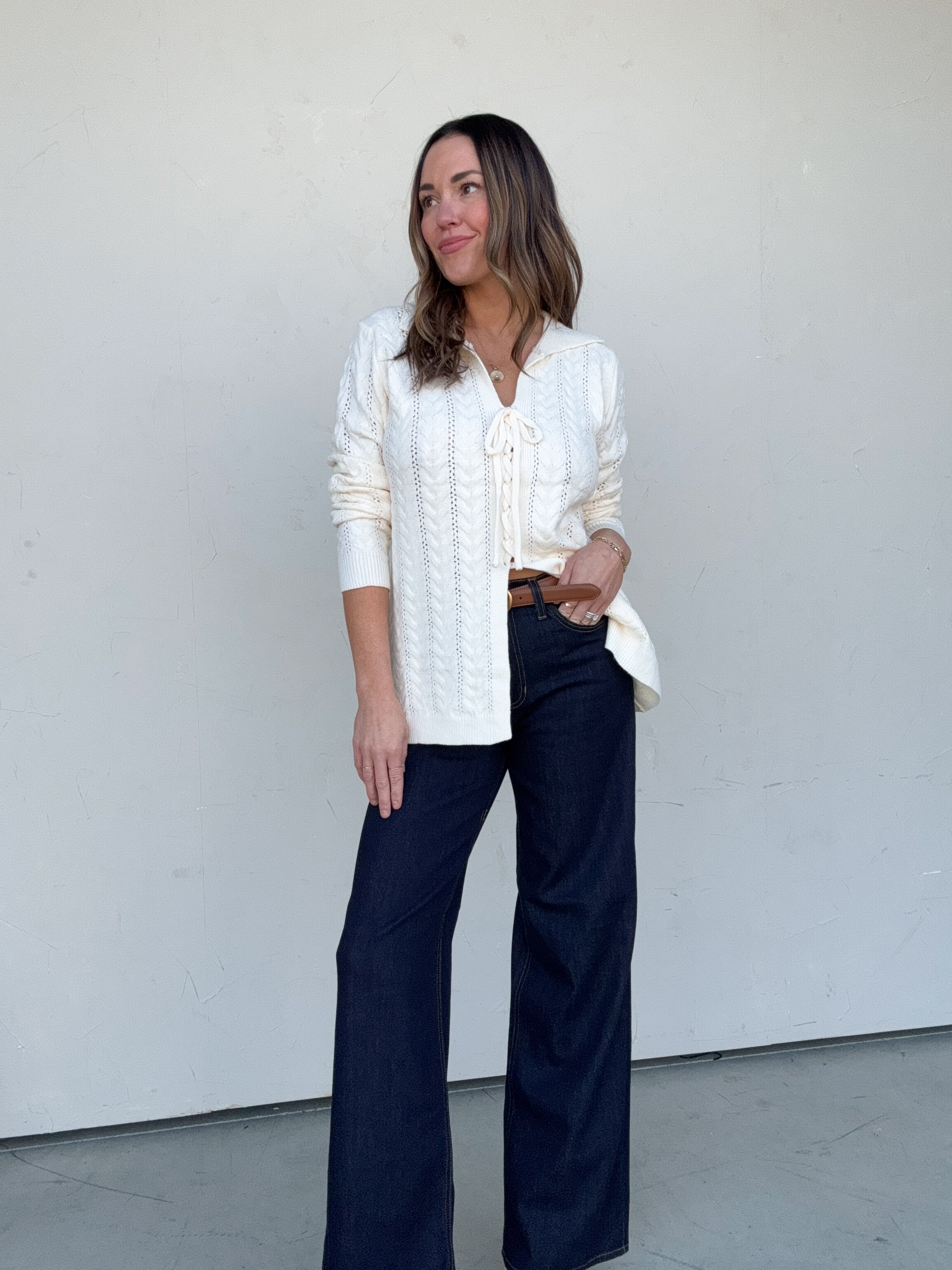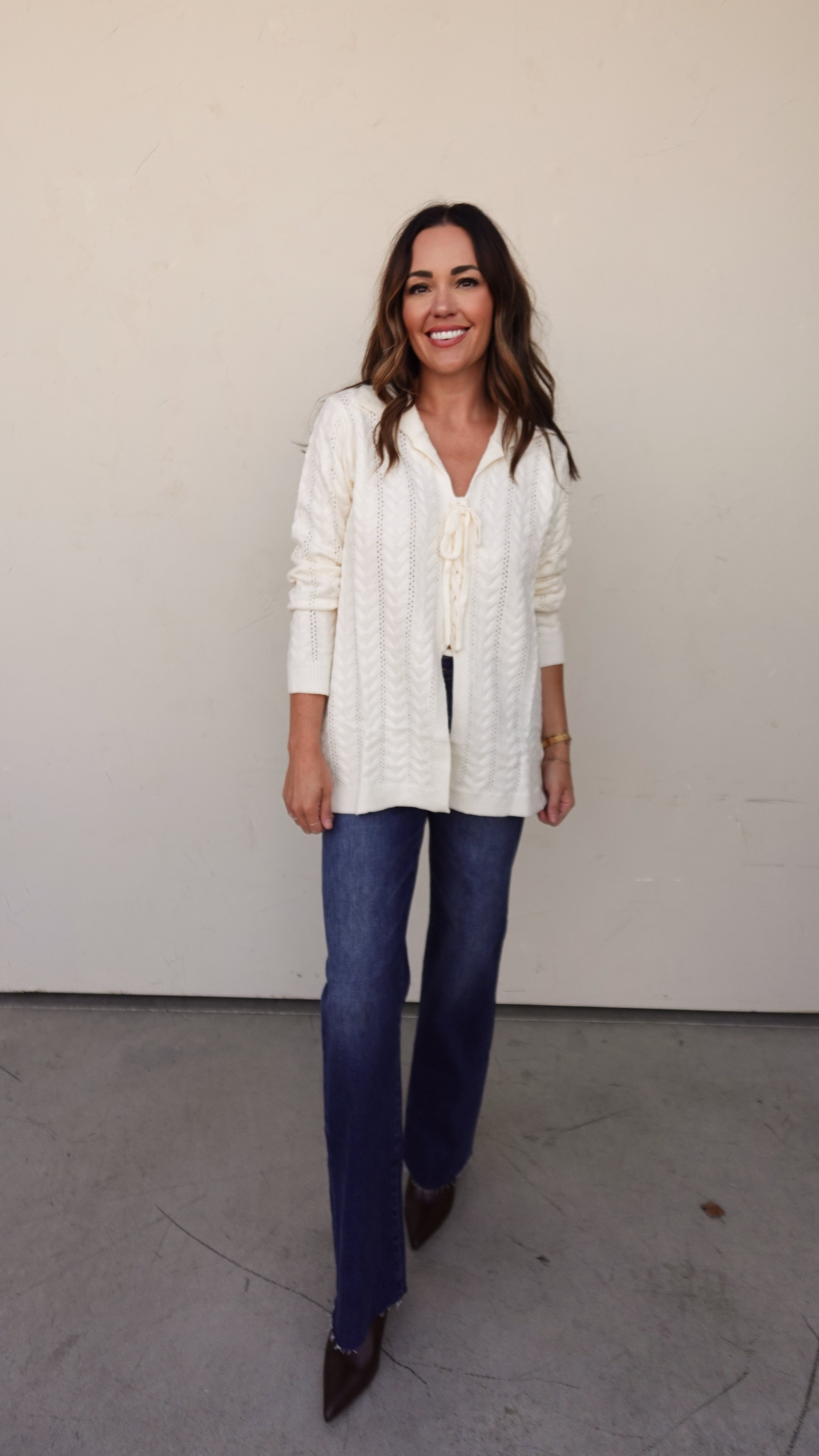 • Style Tip: Style with wide-leg denim for an updated cozy classic, or dress up with a shorter skirt and a boot!