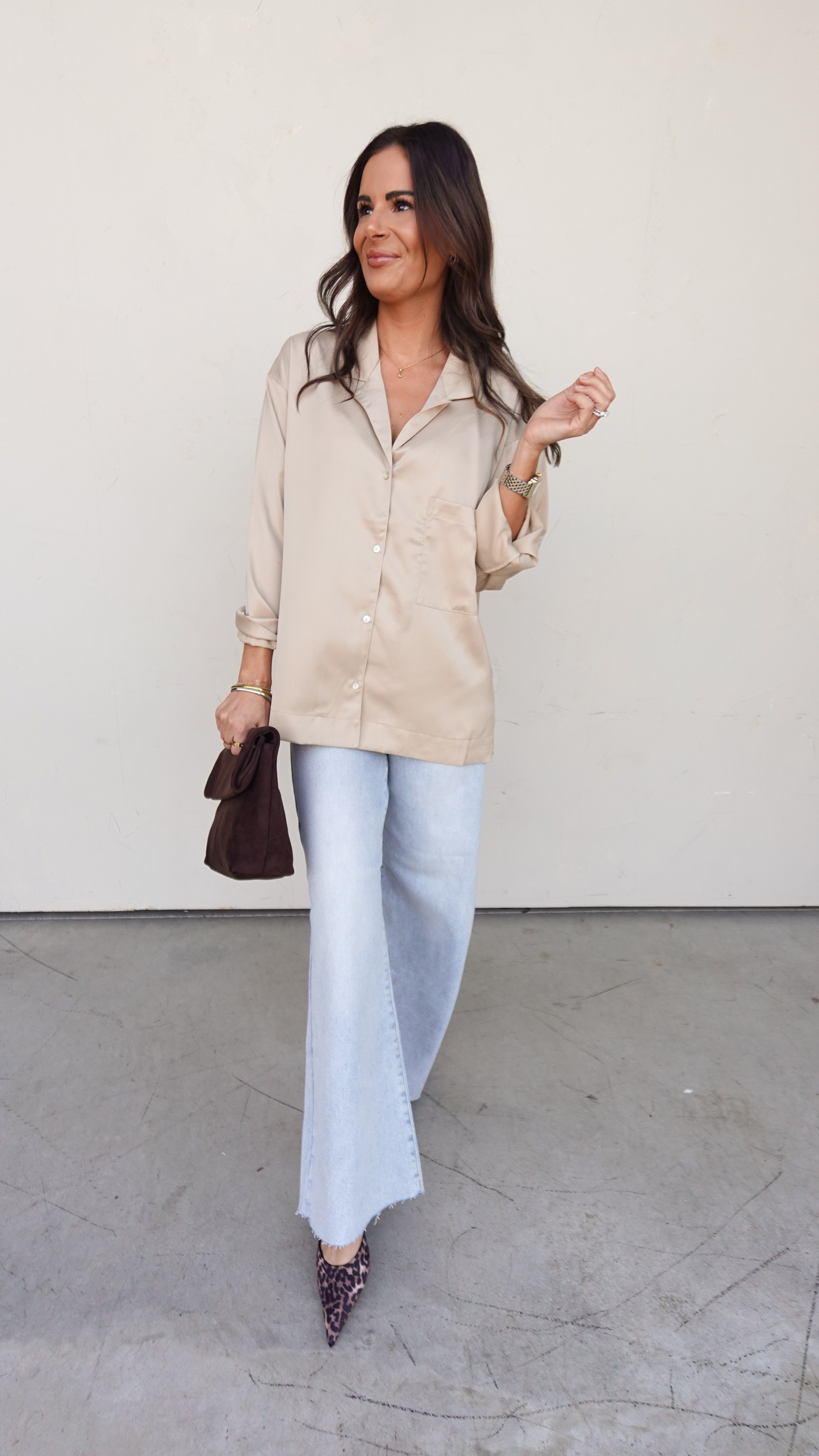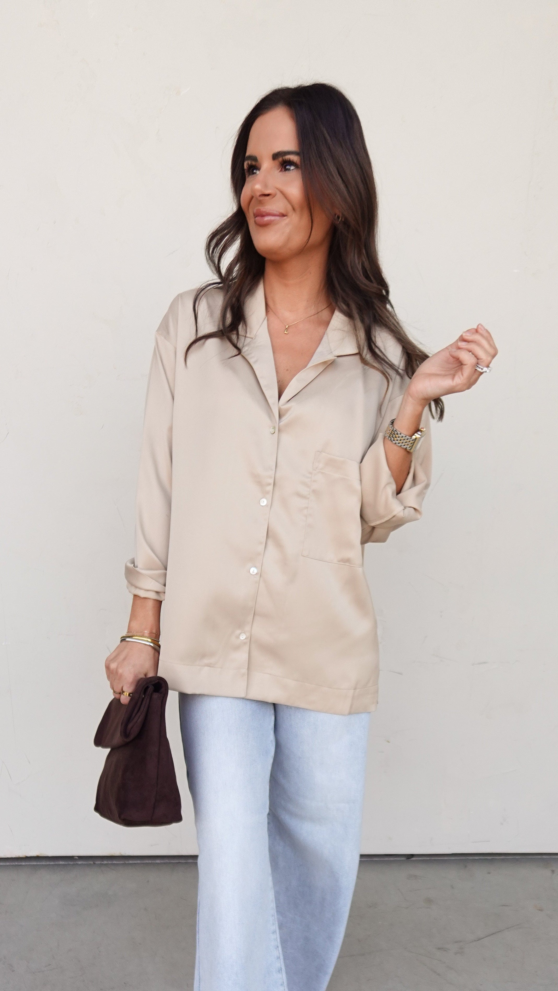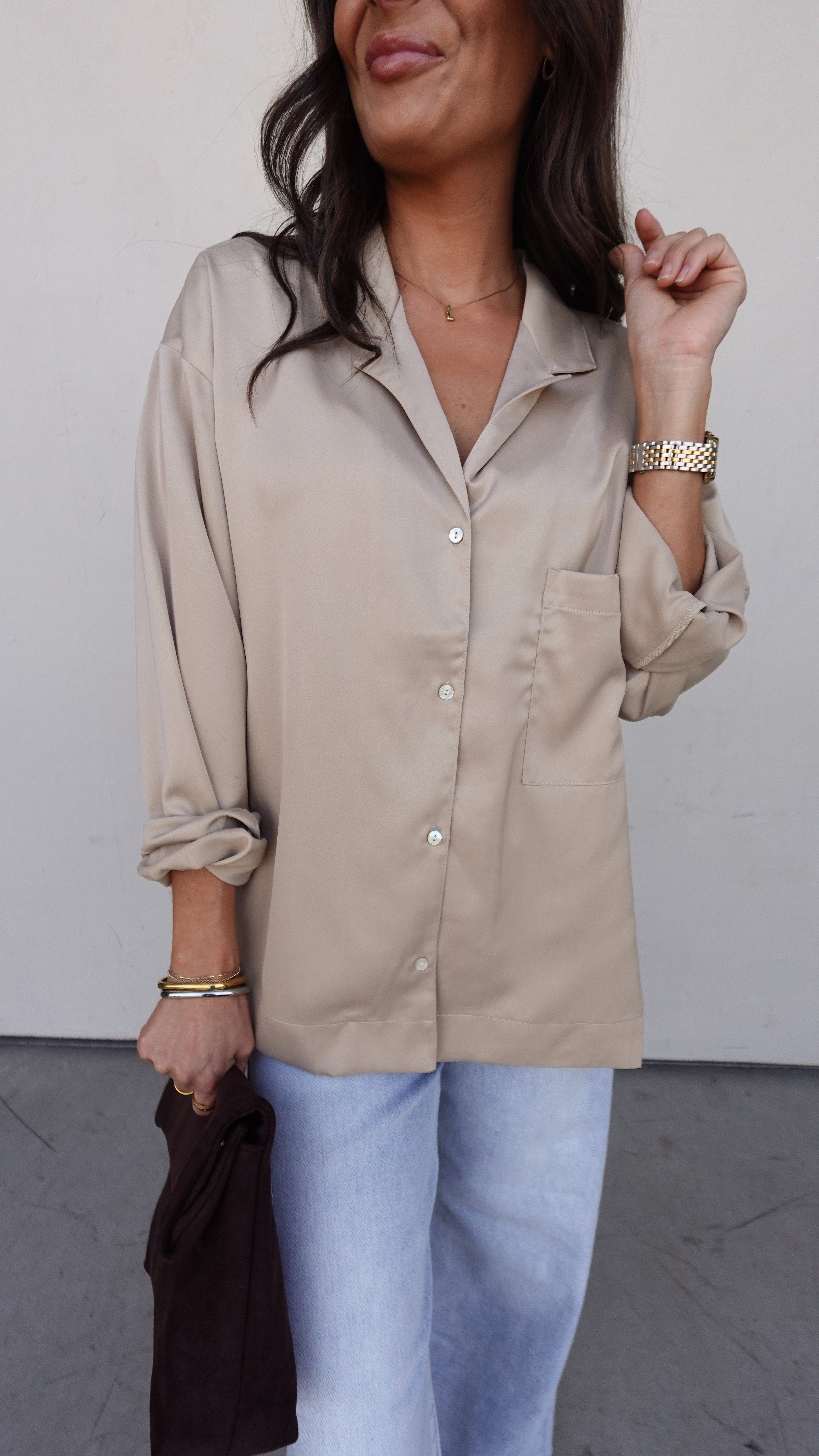 Champagne Satin Button-Up Top