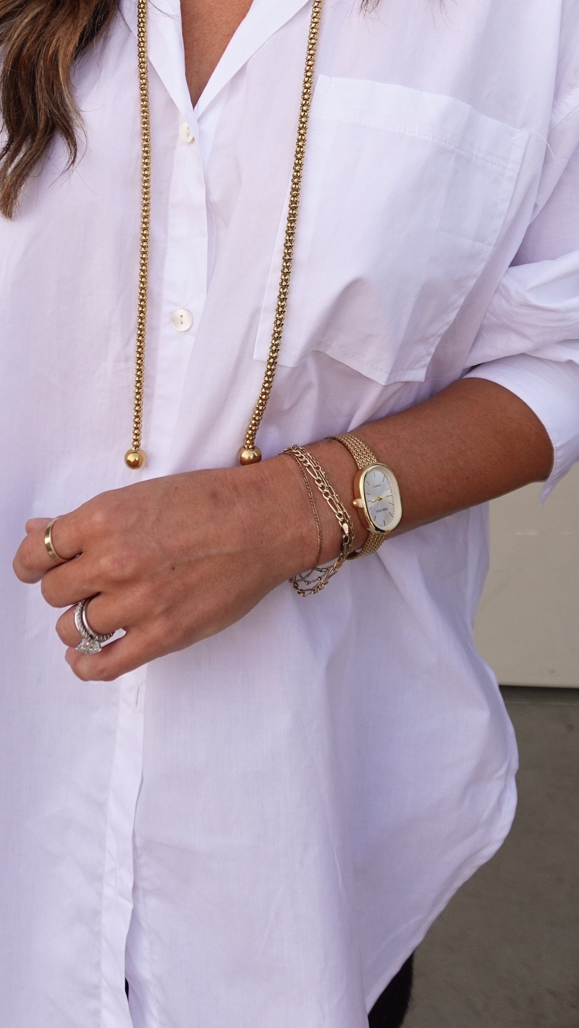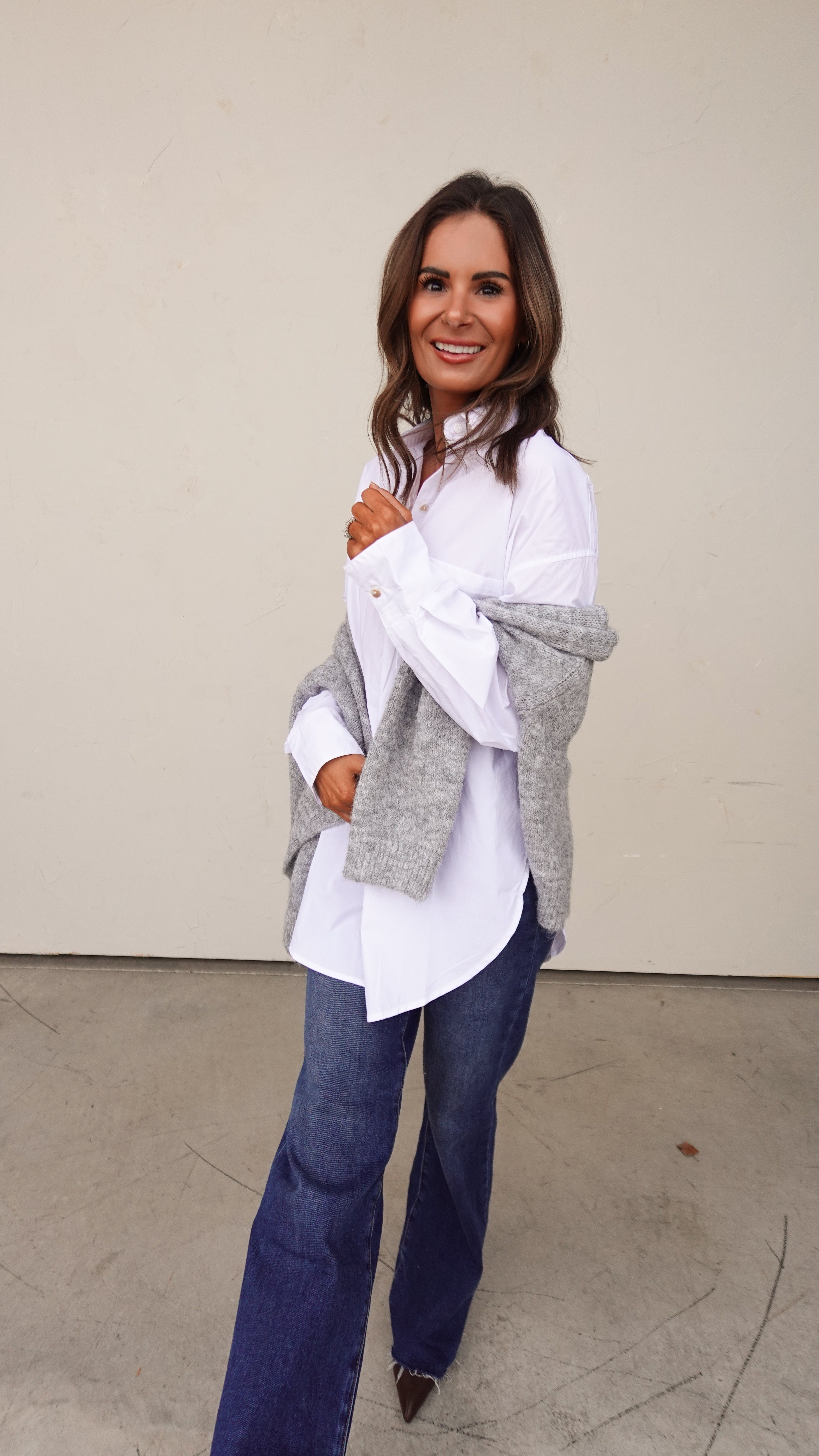 Button-front with a curved hem for easy styling (nursing friendly!)