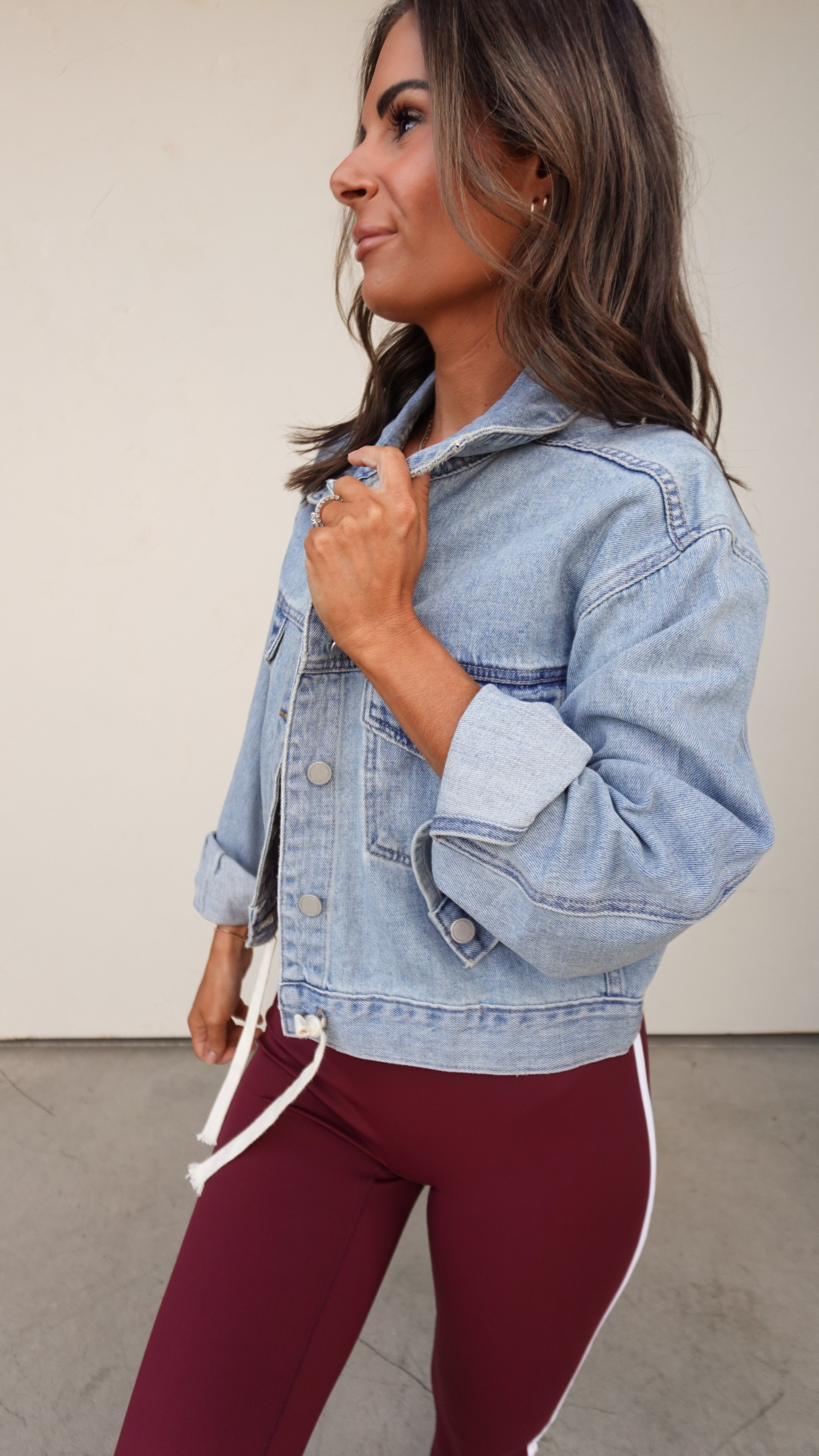 Cropped Denim Jacket with Tie Waist