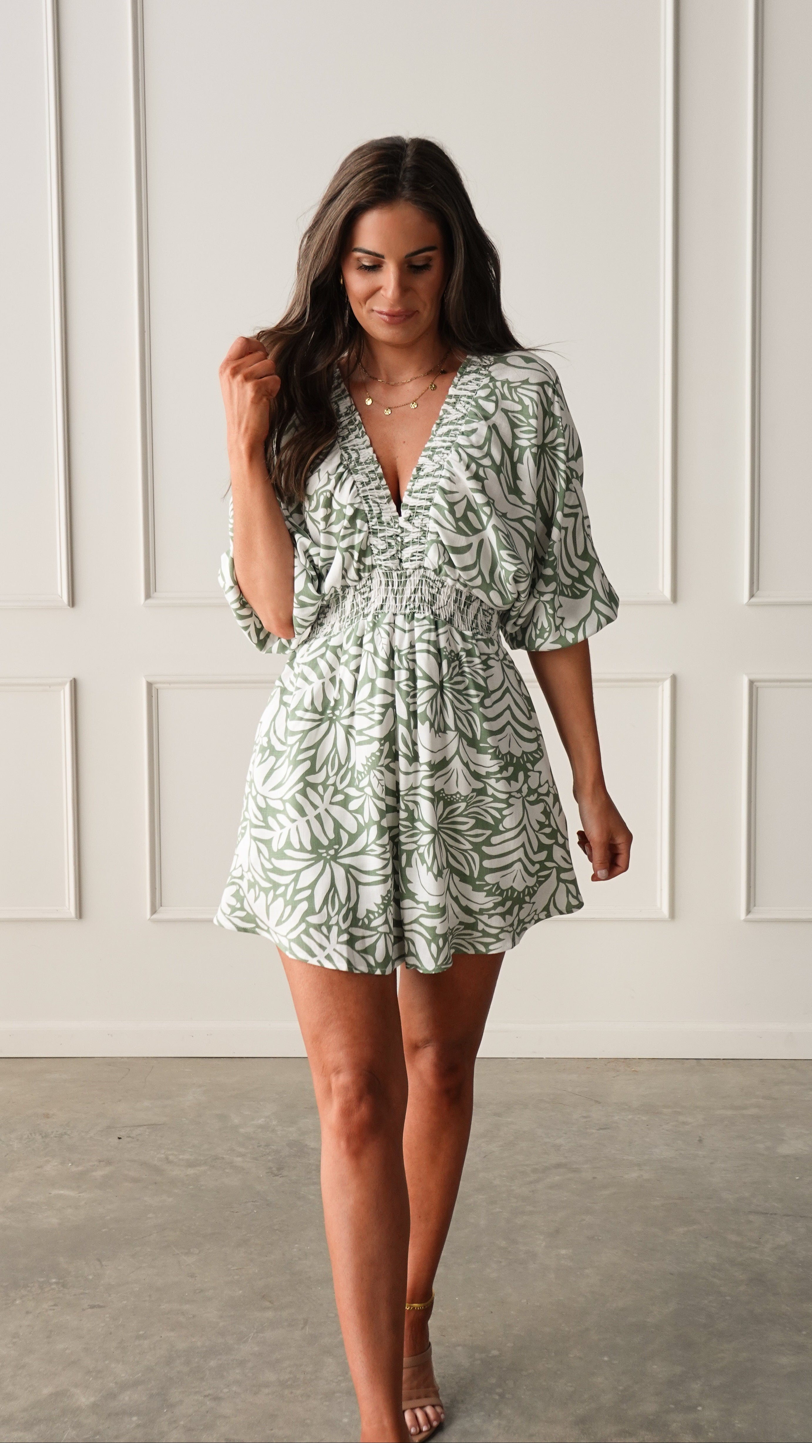 Green Patterned V-Neck Romper