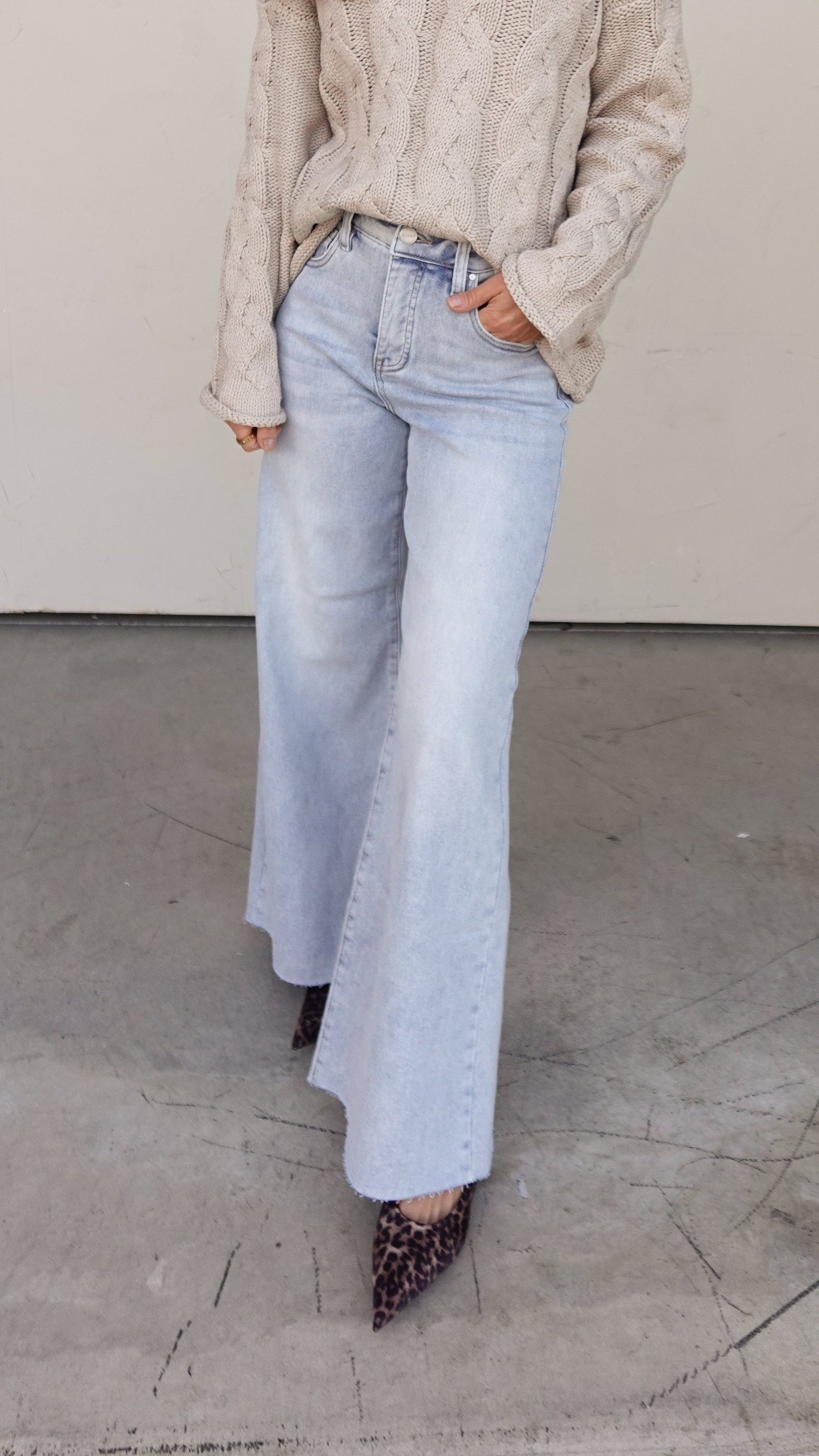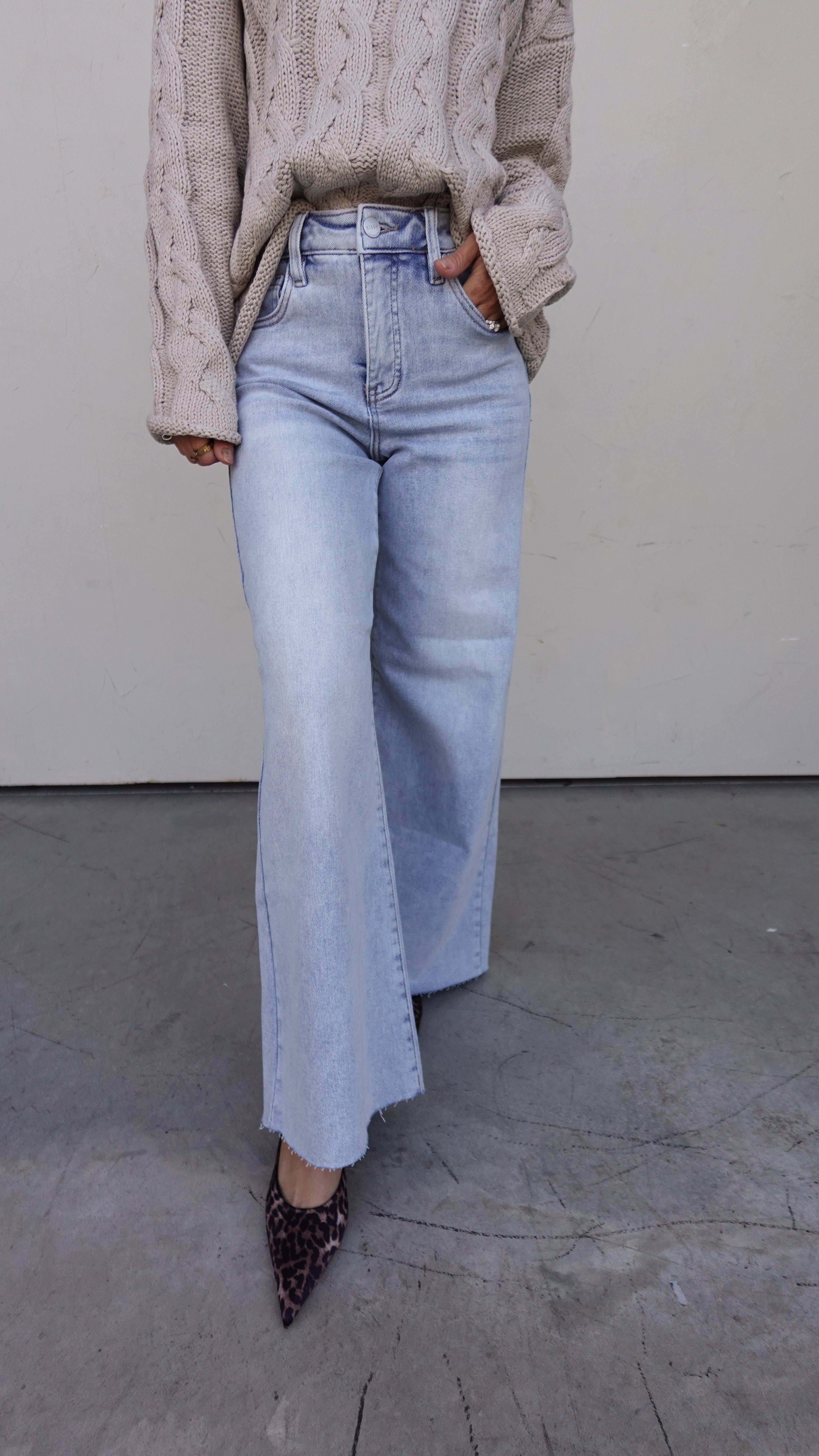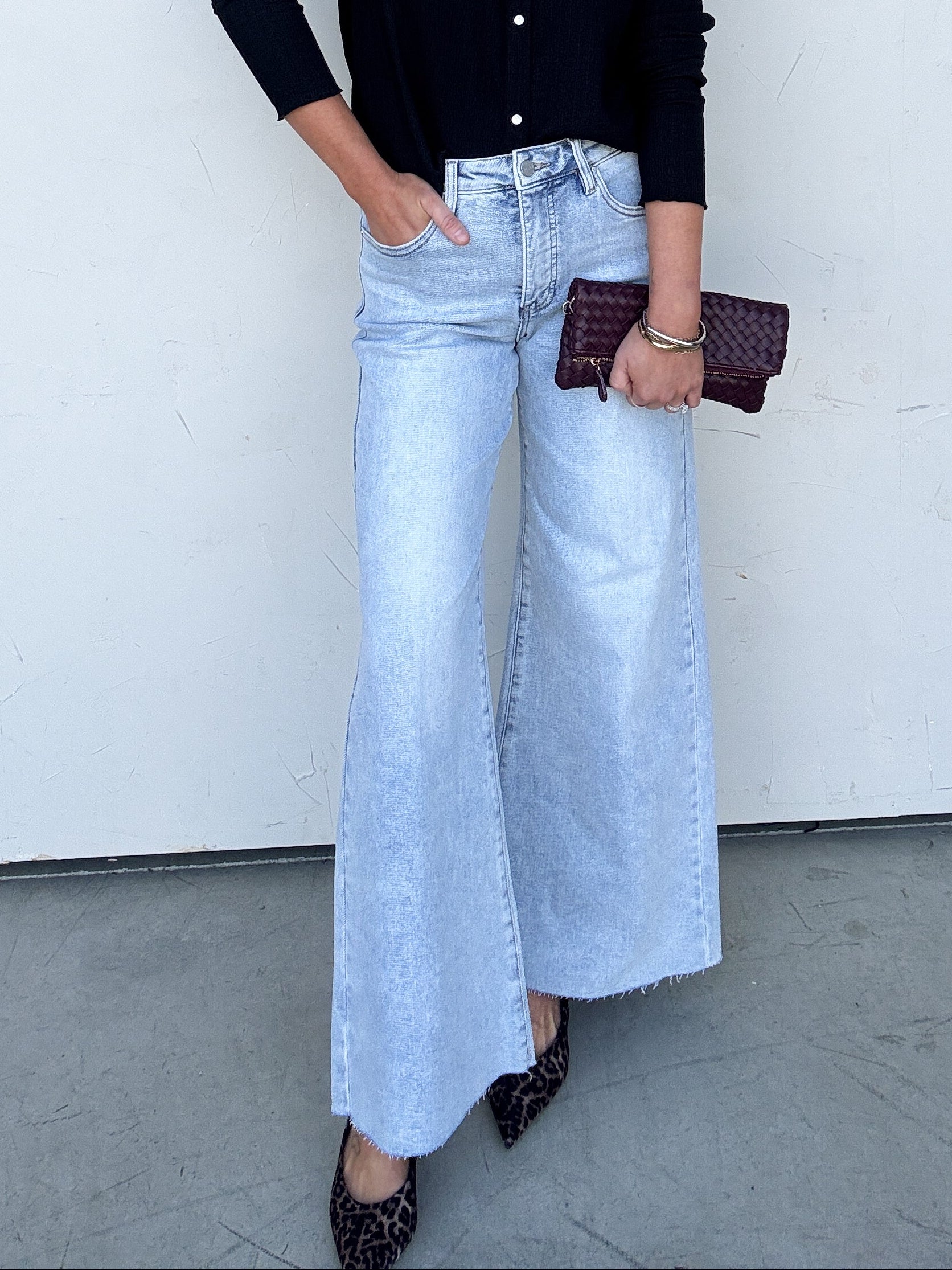 - Wide leg with raw hem (if on the shorter side, these can be cut shorter without affecting the hem!)