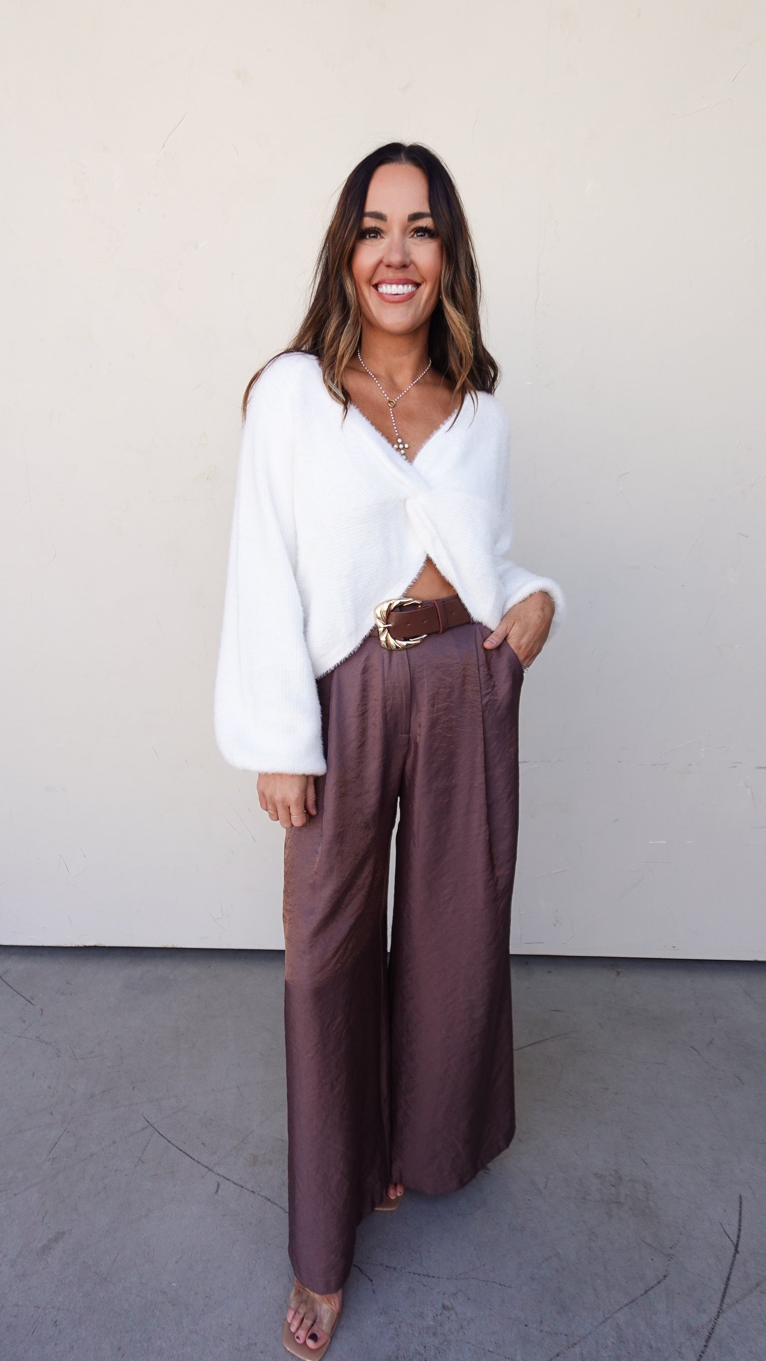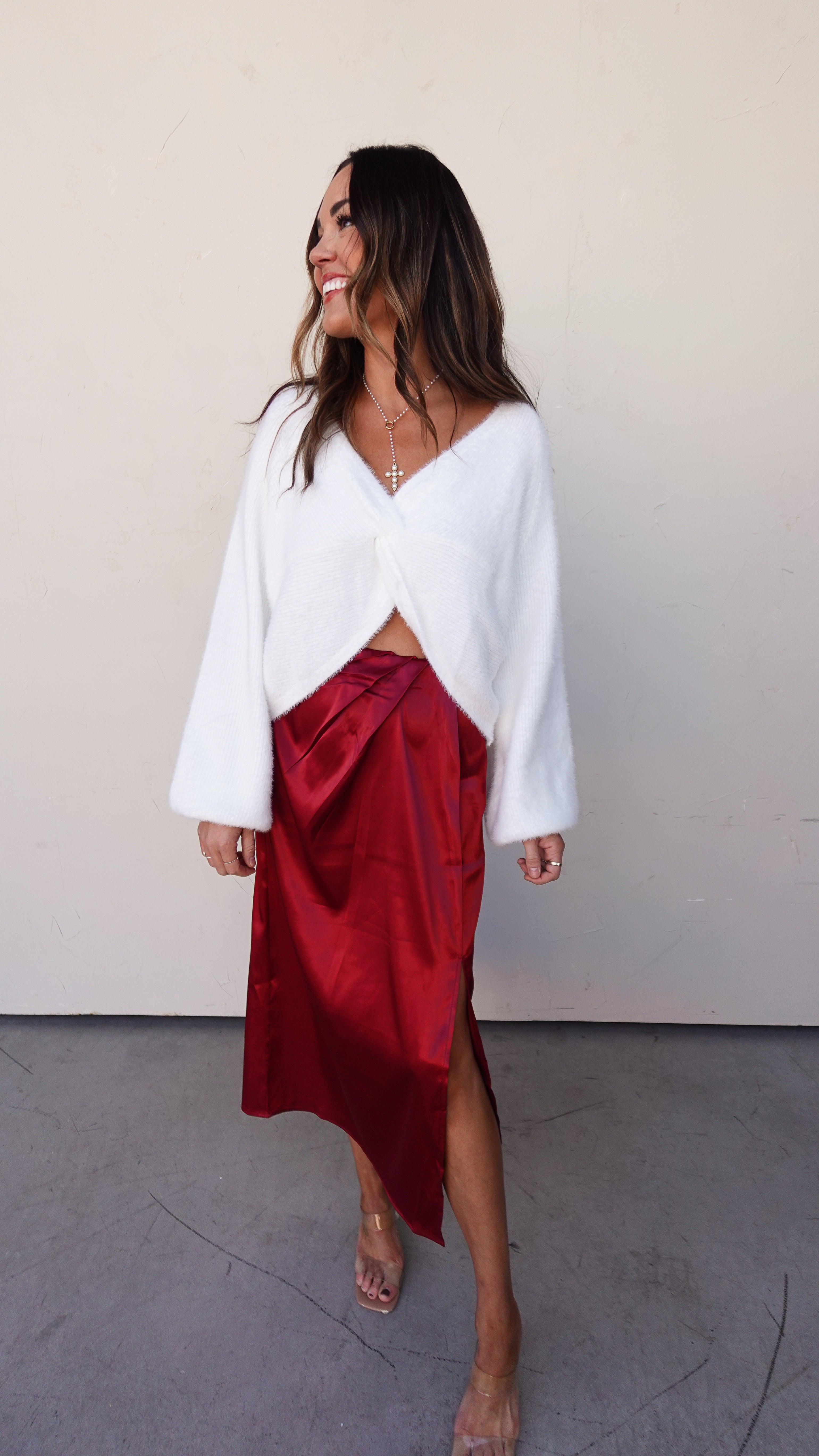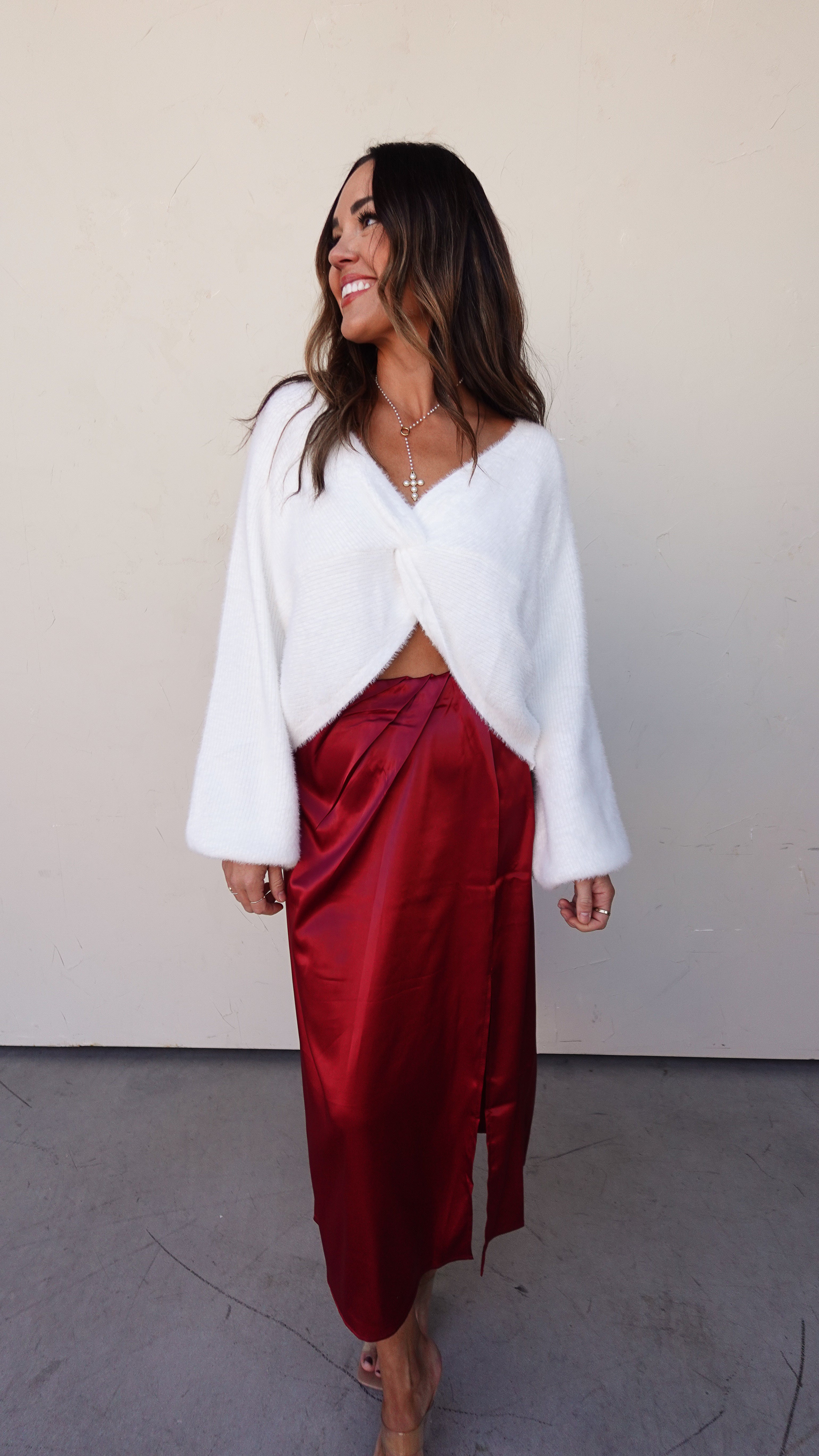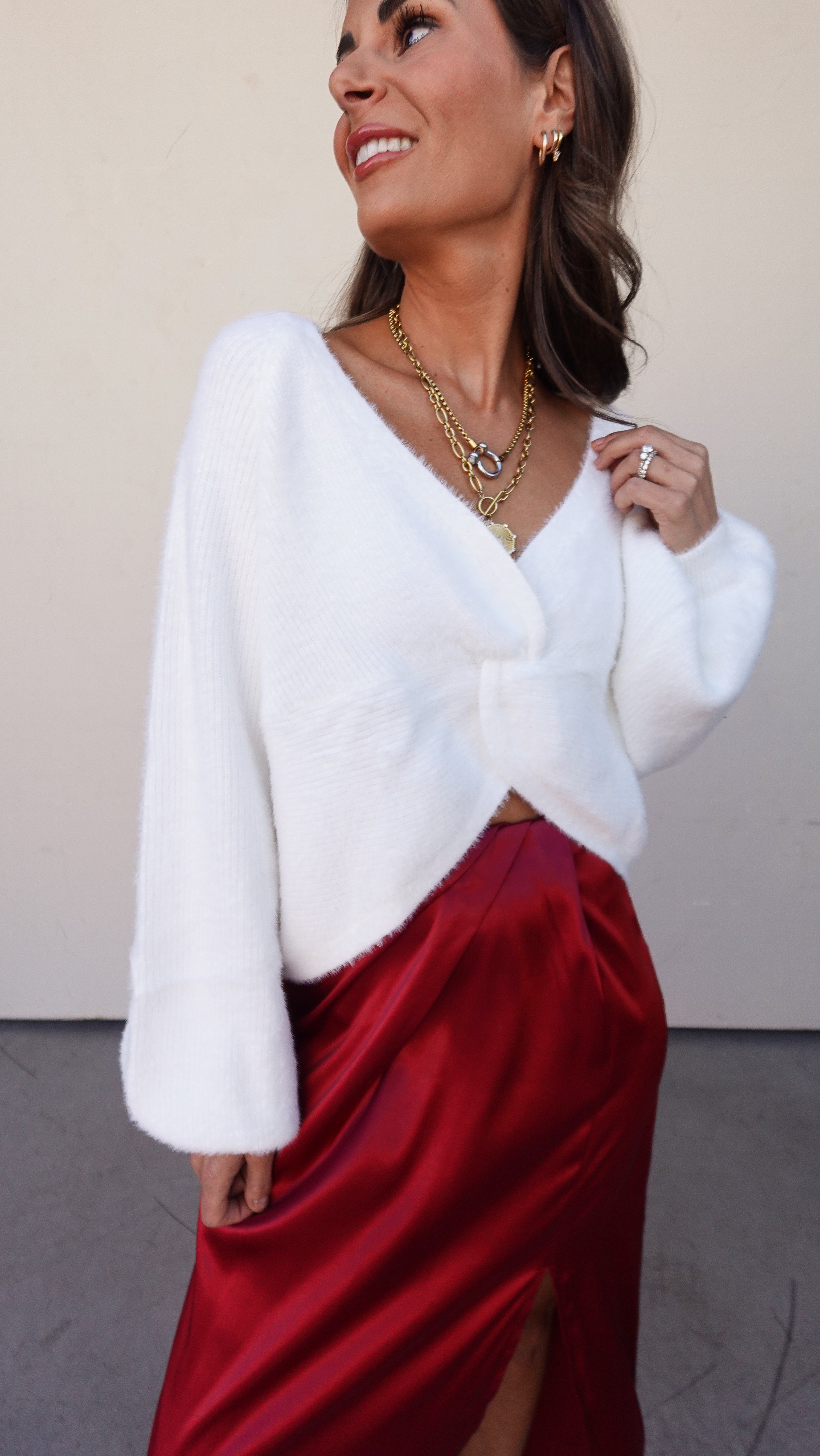 Style tip: Pair with a satin skirt or tailored trousers for an effortless day-to-night look.