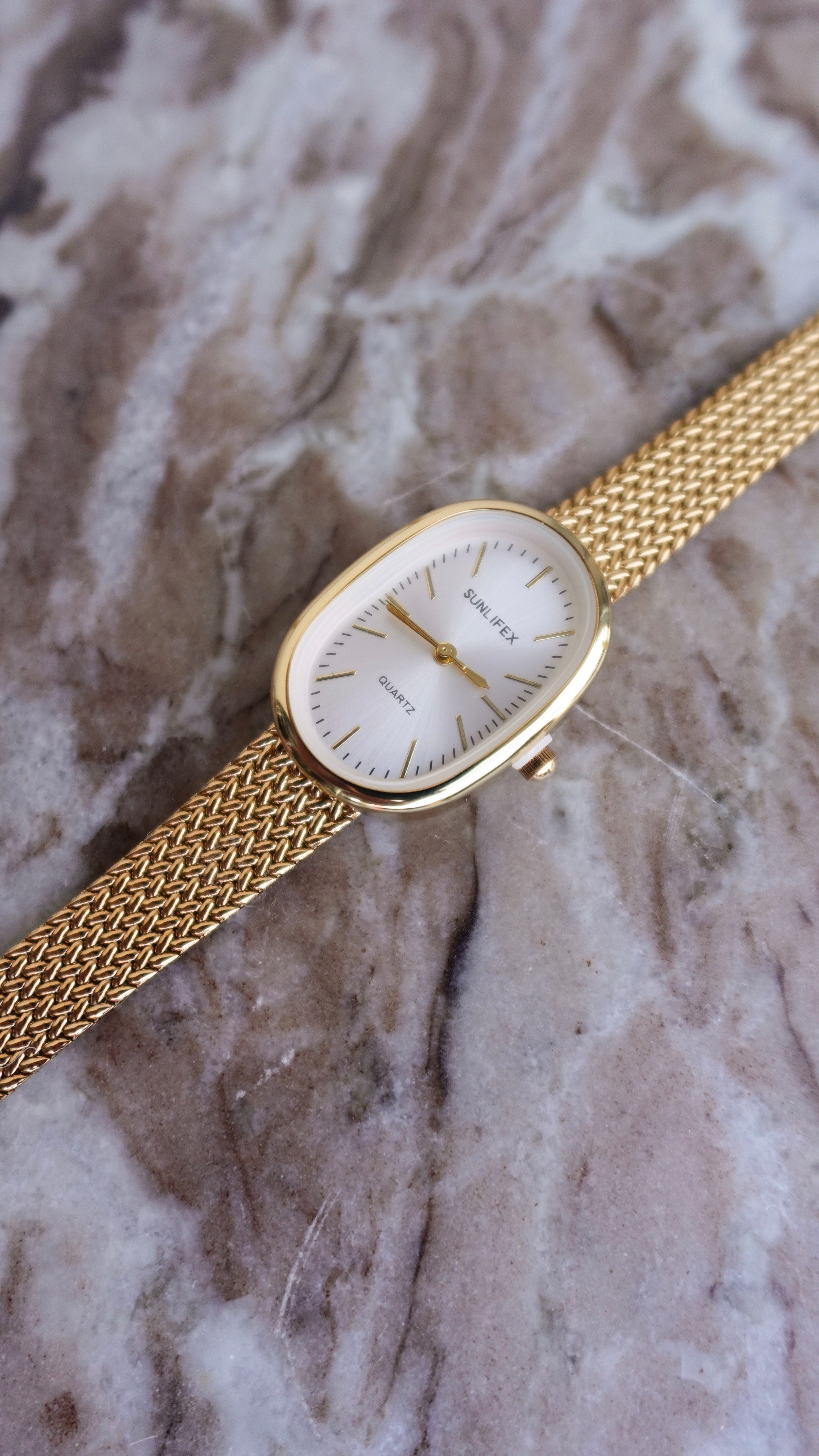 - Vintage-inspired stainless steel watch with adjustable band (no dealing with links for the right fit!)